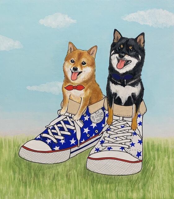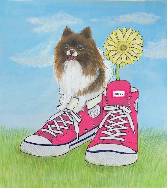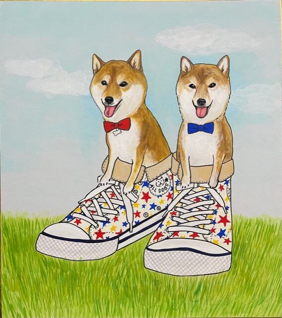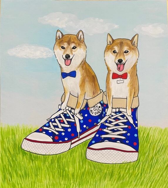 スニーカーも毎回新たに描きますので、見本の写真と若干異なる可能性がございます。