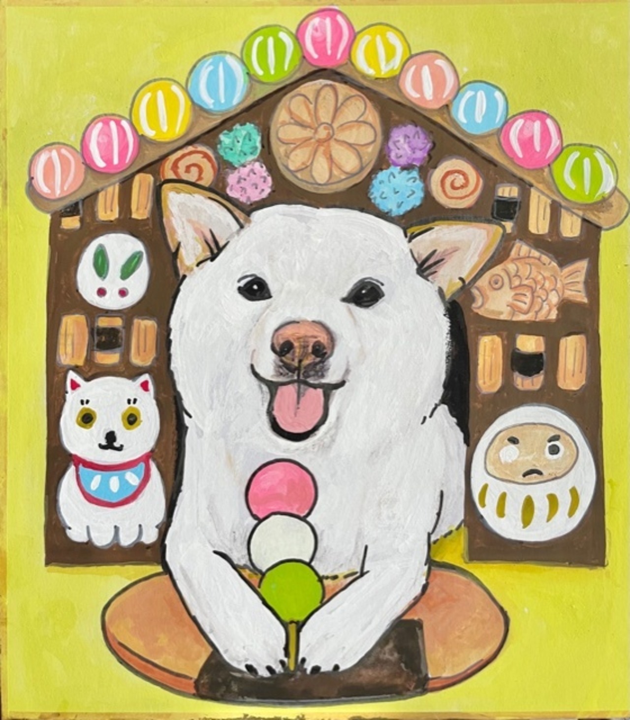 #似顔絵 #ペット似顔絵 #ペット #犬 #猫 #犬似顔絵 #色紙 #ミニ色紙 #似顔絵ギフト #似顔絵プレゼント #原画 #アクリルガッシュ